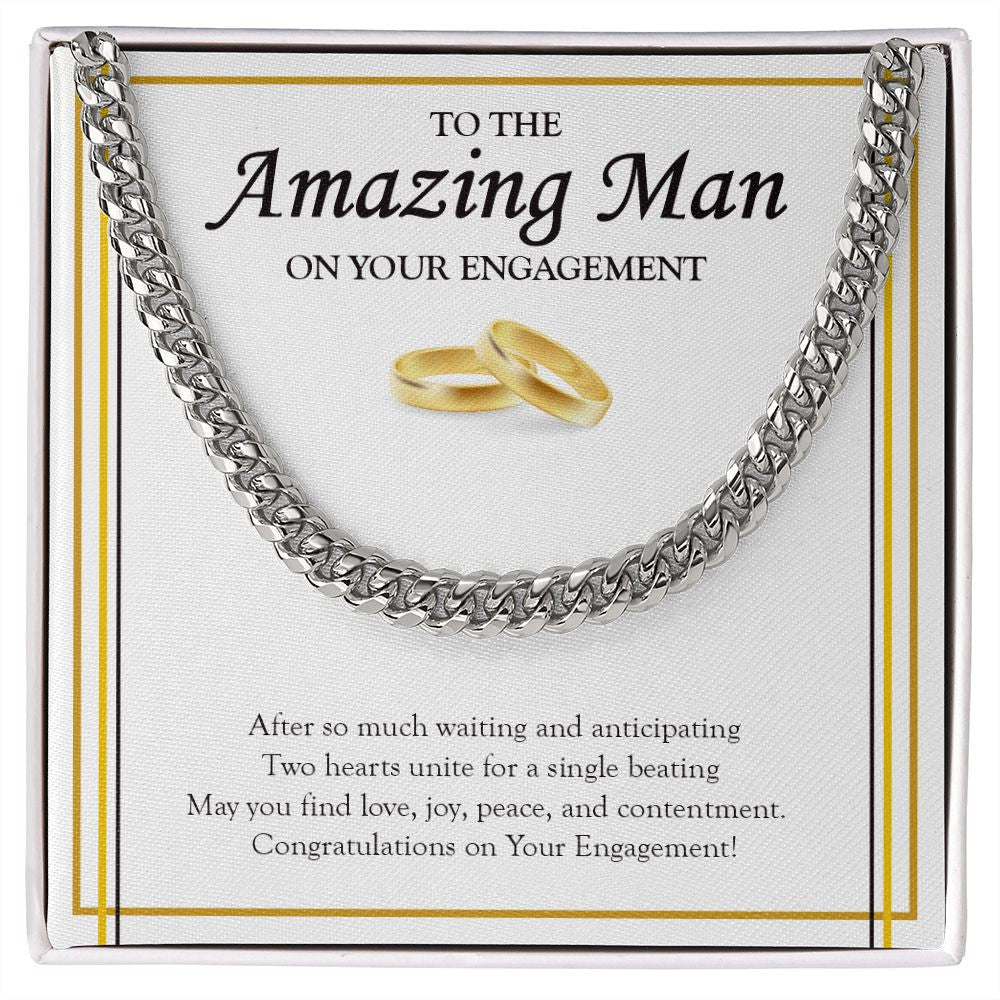 "Two Hearts Unite" Amazing Man Engagement Necklace Gift From Friend BFF Brother Cuban Link Chain Jewelry Box