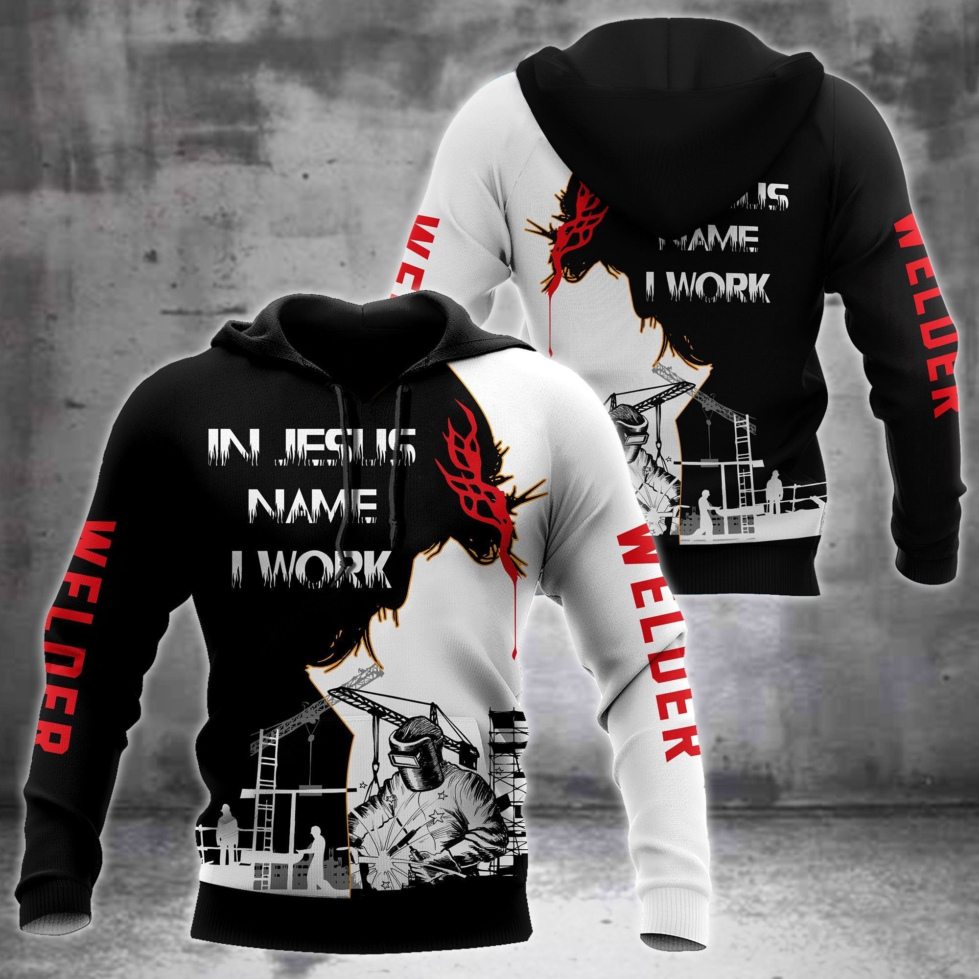 Unisex Hoodie All Over Print Arborist Gifts In Jesus Name I Work Arborist Shirts Black White Unisex Hoodie Labour Day Gifts