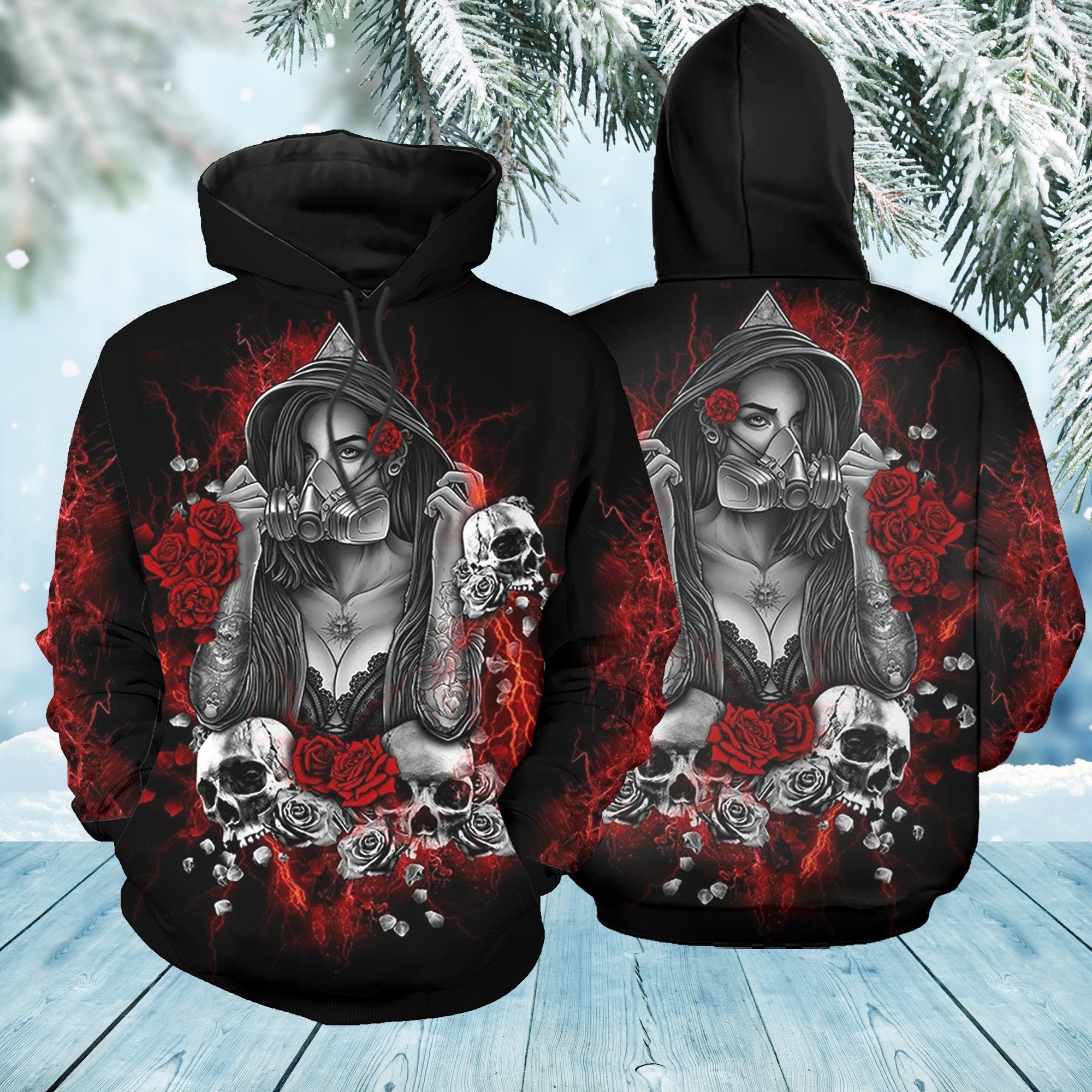Skull Gifts Red Rose Skull Girl US Unisex Size Hoodie
