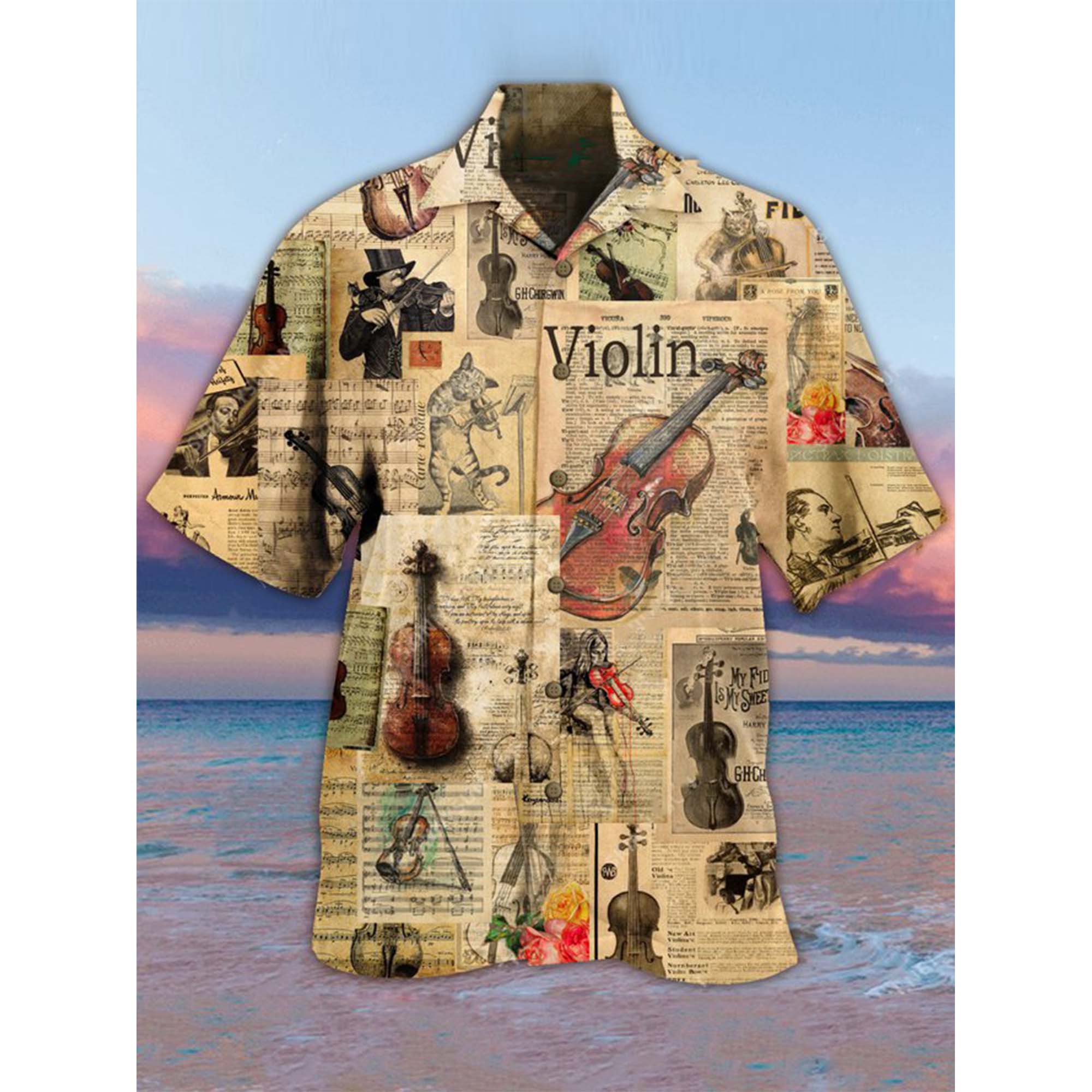 Vintage Cats Playing Violin Hawaiian Aloha Shirt For Cat Lovers