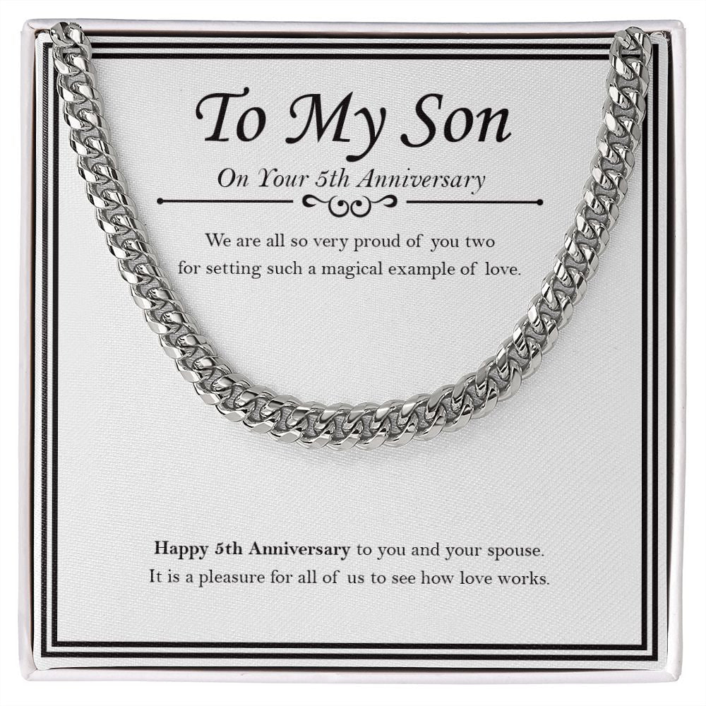 "We Are So Proud Of You" Son 5th Wedding Anniversary Necklace Gift From Mom Dad Parents Cuban Link Chain Jewelry Box