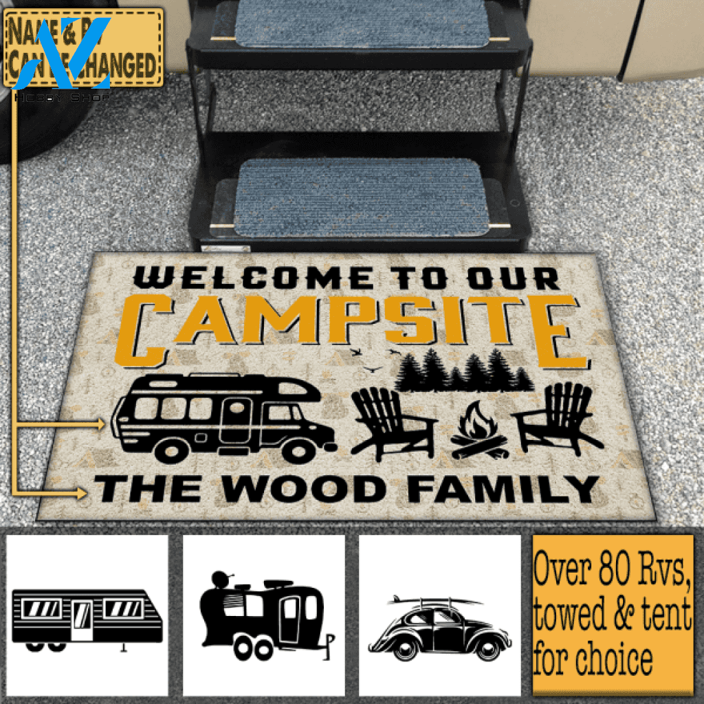Welcome To Our Campsite, Personalized Doormat