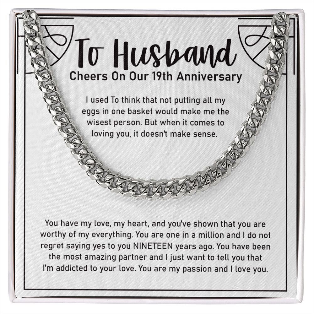 "You Are My Passion" Husband 19th Wedding Anniversary Necklace Gift From Wife Cuban Link Chain Jewelry Box