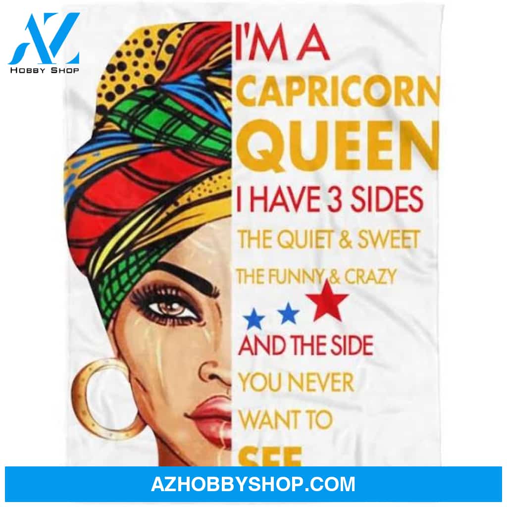 Zodiac Blanket, I'm A Capricorn Queen I Have 3 Sides Capricorn Zodiac Birthday Blanket